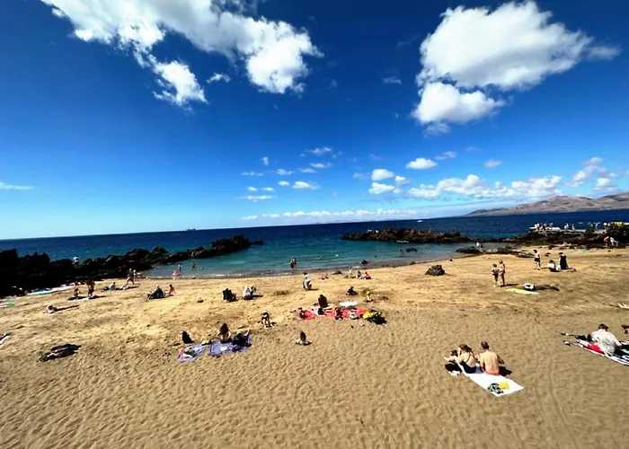 El Apartamento Apartamento Playa Chica, Vistas Al Mar Lanzarote Puerto del Carmen está situado a tan solo 6 minutos a pie del Vino + Lanzarote Bar, y a una distancia de 450 metros del puerto del casco antiguo. Este apartamento frente a la playa, con una terraza con vistas al mar, está situado enfrente de la Playa Chica.